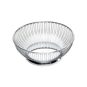 Klassiek rond broodmandje / mandje / fruitmandje 24 cm van Alessi in rvs metaaldraad. Hoogte: 8,5 cm. Een item van de klassieke collectie uit de vroegere jaren van de Alessi-fabriek. Ontwerp: Ufficio Tecnico Alessi.