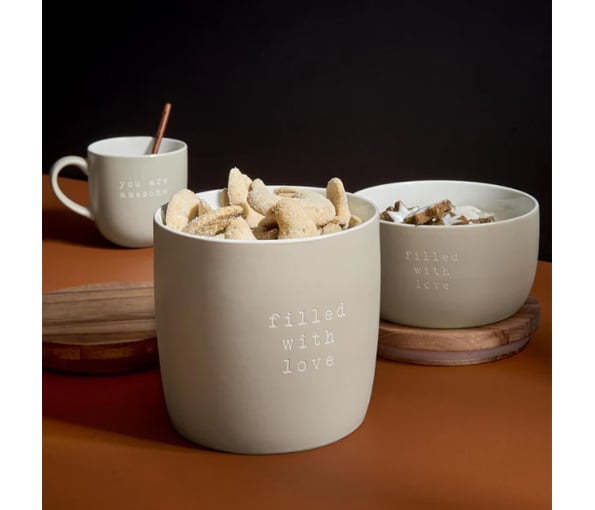 Voorraaddoos / Koekjesdoos ' Filled with Love ' h. 14.5 cm met houten deksel