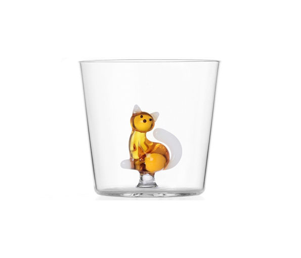 Ichendorf Milano Beker Tabby Cat glas 35 cl zittende amber kat met witte staart