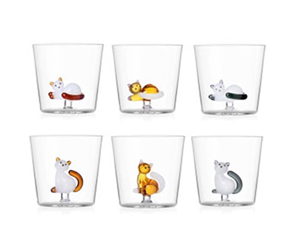 Ichendorf Milano Beker Tabby Cat glas 35 cl zittende witte kat met amber staart