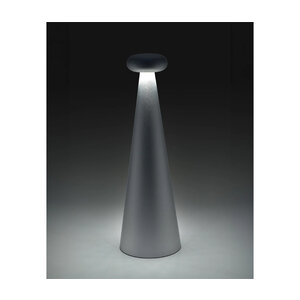 Table lamp / tafellamp Alessi Bedin grijs, een ontwerp van Alessandro Stabile. Tafellamp van geanodiseerd aluminium. Oplaadbare batterij met USB-C-kabel. LED-lamp 3,7W 5V. Hoogte 26 cm. Dimbaar.