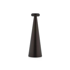Table lamp / tafellamp Alessi Bedin donkerbruin, een ontwerp van Alessandro Stabile. Tafellamp van geanodiseerd aluminium, donkerbruin. Oplaadbare batterij met USB-C-kabel. LED-lamp 3,7W 5V. Hoogte 26 cm. Dimbaar.
