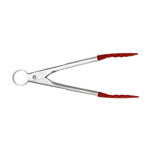 Serveertang Cuisipro 18 cm roestvrij staal / Grilltang / Barbecuetang. Aan het uiteinde afgewerkt met hittebestendig siliconen in rode kleur.