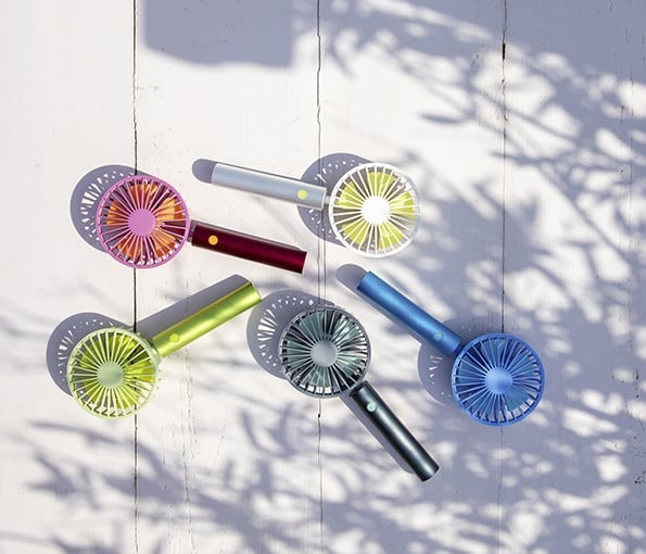 Draagbare ventilator Remember Flow Berry roze-lila om in de hand te houden of op tafel of bureel te plaatsen. EV06. Geniet op een vlotte manier van deugddoende koelte. Oplaadbaar via USB-aansluiting. Werking tot 7 uur. 3 snelheden.