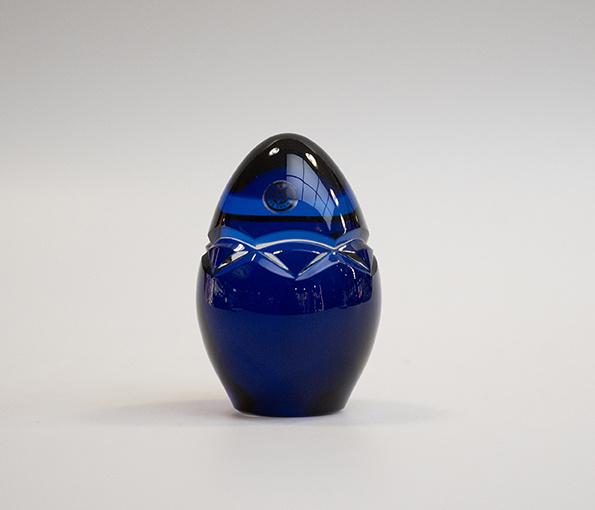 Presse-papier / Ei kristal kobaltblauw geslepen 97 mm