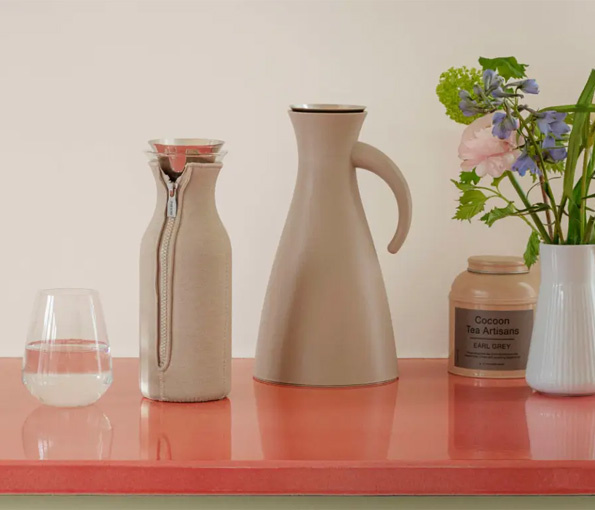 Eva Solo Fridge carafe 1 L donkergrijs dark grey geweven hoesje taupe