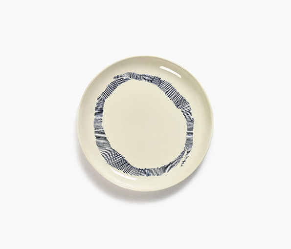 Serax Gebakbord 19,5 cm Feast Ottolenghi wit met blauwe swirl -streepjes