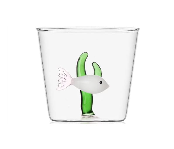 Beker Ichendorf Milano Marine Garden 35 cl groene vis met roos zeewier. Borosylicaatglas, tot 40° C in de vaatwasmachine.
