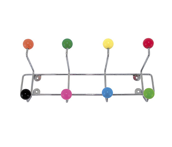 Hoedenrek of kapstok met gekleurde bollen op metalen frame. 34 x 15cm . Model Saturn, uit de collectie van Present Time. Met 8 haken heb je genoeg ophangruimte en met de 4 schroefogen kun je hem stevig aan de deur of wand bevestigen.