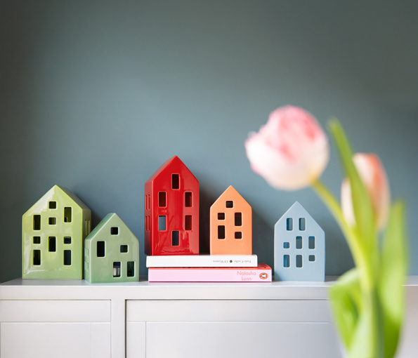 Huisje / Lichthuisje / Sfeerlichtje Remember Nyhavn lichtgroen. Vervaardigd in dolomiet, Handwas aanbevolen. Geïnspireerd op de kleurrijke panden in de Nyhavn van Kopenhagen.