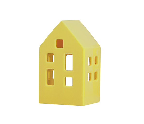 Huisje / Lichthuisje / Sfeerlichtje Remember Nyhavn geel. Vervaardigd in dolomiet, Handwas aanbevolen. Geïnspireerd op de kleurrijke panden in de Nyhavn van Kopenhagen.