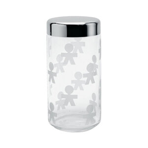 Voorraaddoos glas - deksel roestvrij staal Alessi King Kong Girotondo. Inhoud 75 cl.