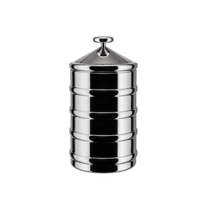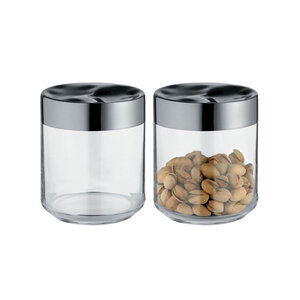 Voorraaddoos / Keuken Box Alessi Julieta 50 cl glas en roestvrij staal. Het deksel is precies uit gedeukt blinkend roestvrij staal. Een ontwerp van de Catalaanse architect en designer Lluis Clotet. PRIJS PER STUK.