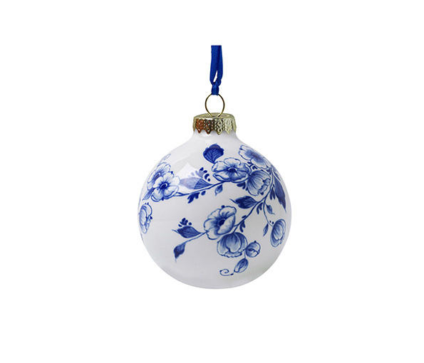 Heinen Delfs Blauw Kerstornament kerstbal bloemen porselein 7 cm