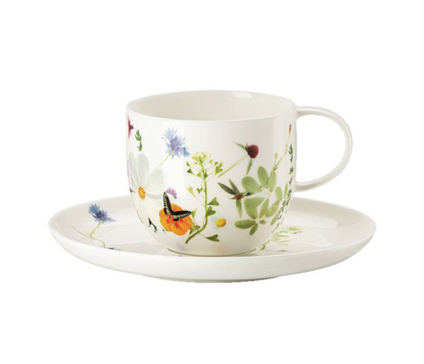 Zo verfrissend als een wandeling in de frisse berglucht wordt het bloemendecor »Grand Air« op een natuurlijke wijze afgebeeld op de Rosenthal-vorm Brillance. De Zwitserse textielontwerpster Regula Stüdli neemt de kijker mee op haar reis door een kruiden- en bloementuin, waar alles groen en in bloei staat.Fijne bloesems groeien hier, samen met aromatische wilde bloemen en kruidige planten, die het sierlijke en verfijnde decor »Grand Air« vormen. Hier vind je eetbare bloemen zoals Oost-Indische kers, madeliefjes en nog veel meer, naast tijm, rozemarijn en lavendel.