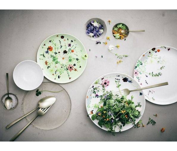 Zo verfrissend als een wandeling in de frisse berglucht wordt het bloemendecor »Grand Air« op een natuurlijke wijze afgebeeld op de Rosenthal-vorm Brillance. De Zwitserse textielontwerpster Regula Stüdli neemt de kijker mee op haar reis door een kruiden- en bloementuin, waar alles groen en in bloei staat.Fijne bloesems groeien hier, samen met aromatische wilde bloemen en kruidige planten, die het sierlijke en verfijnde decor »Grand Air« vormen. Hier vind je eetbare bloemen zoals Oost-Indische kers, madeliefjes en nog veel meer, naast tijm, rozemarijn en lavendel.