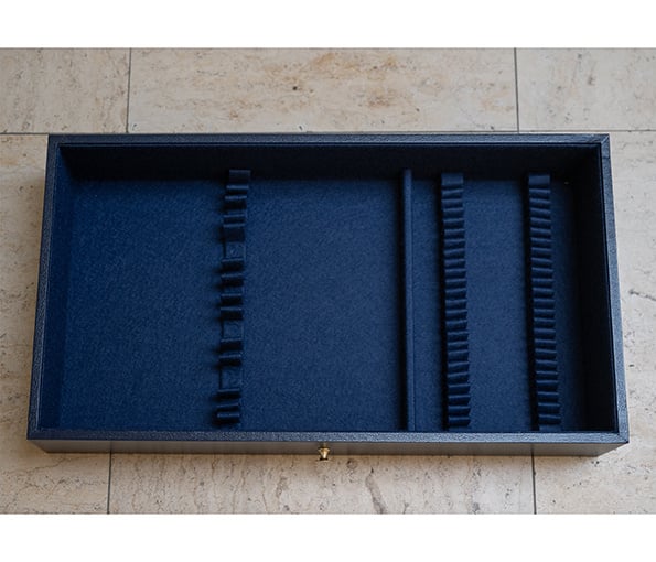 Deze koffer bestaat uit 3 schuiven en is bestemd voor een klassieke 128-delige samenstelling.