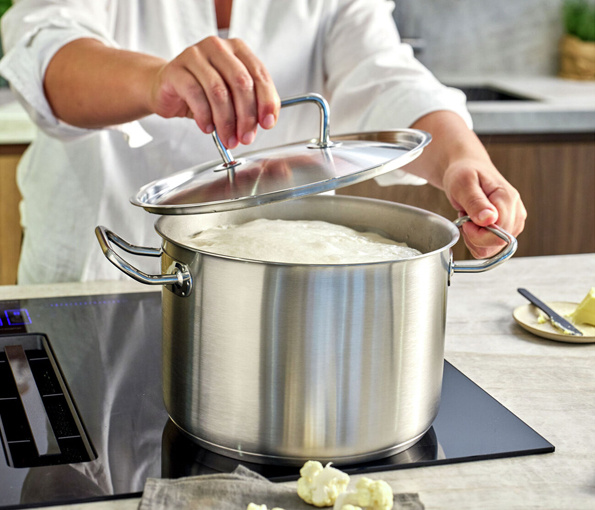 De ergonomische grepen van hoogwaardig roestvrij staal blijven stevig en koel, terwijl de speciale gietrand het uitschenken eenvoudig maakt. Het deksel sluit perfect aan, waardoor warmte en stoom behouden blijven en je energie bespaart. Bovendien is het deksel compatibel met alle Demeyere pannen van dezelfde diameter.