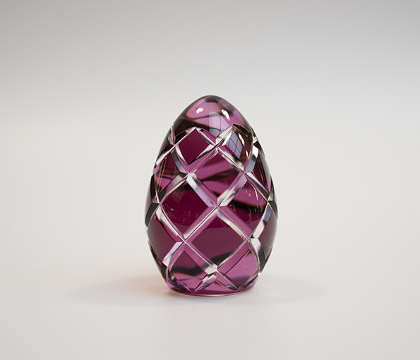 Presse-papier / Ei kristal fuchsia geslepen 97 mm
