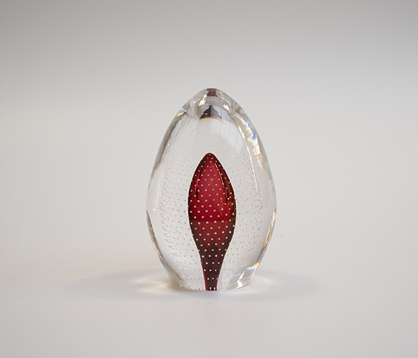 Presse-papier / Ei kristal Symphony rode luchtbel 97 mm