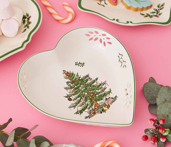 Spode Schaal hartvorm opengewerkt Christmas Tree 19,5 cm
