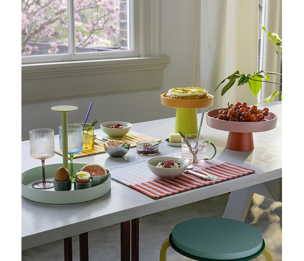 Serveerschotel Remember lichtgroen en limoen 28 cm diam. - 25 cm hoogte. Kwalitatieve afwerking in poedergelakt metaal.