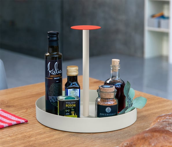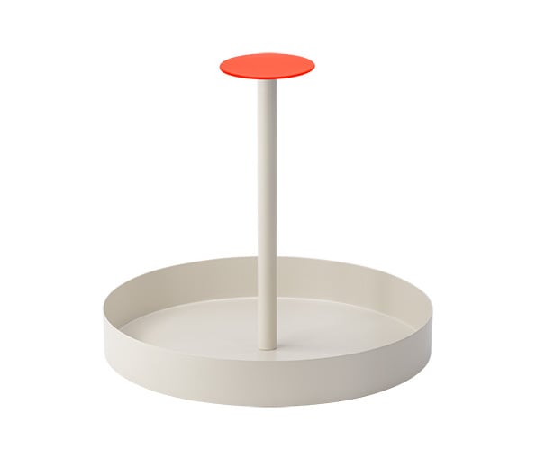 Serveerschotel Remember beige & oranje - koraal 28 cm diam. - 25 cm hoogte. Kwalitatieve afwerking in poedergelakt metaal. Tray 'Nana' koraal.