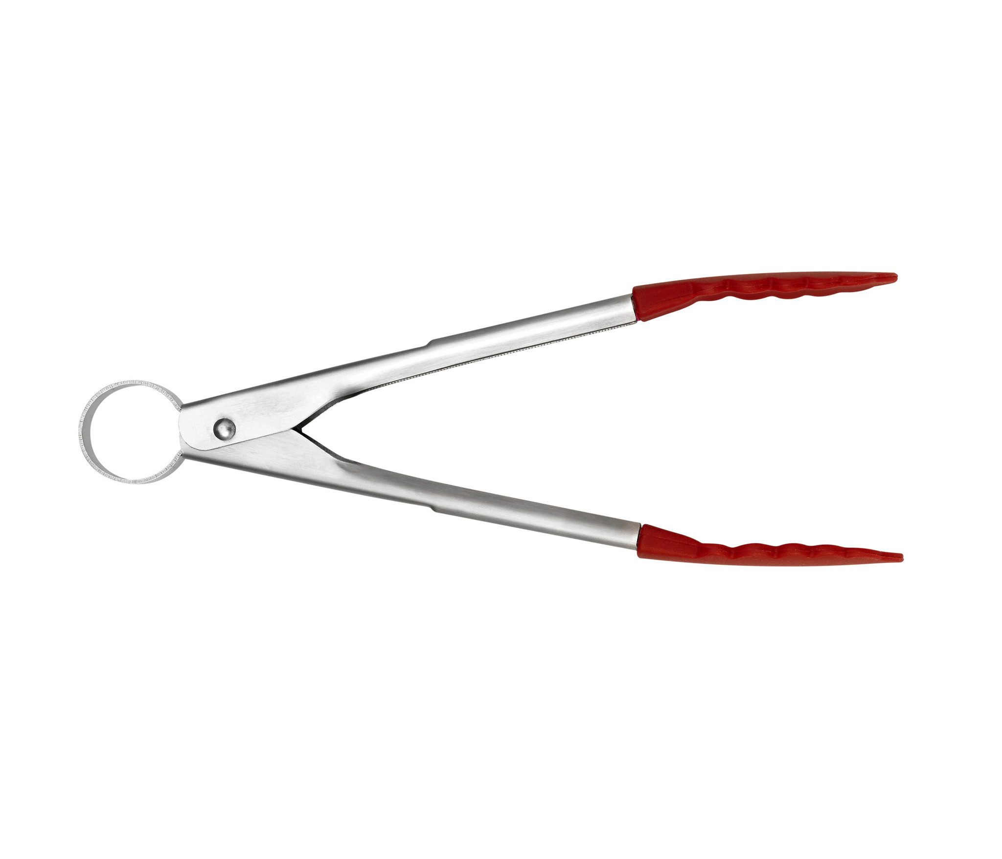 Serveertang Cuisipro 24 cm roestvrij staal / Grilltang / Barbecuetang. Aan het uiteinde afgewerkt met hittebestendig siliconen in rode kleur.