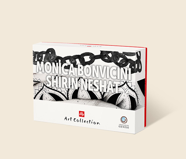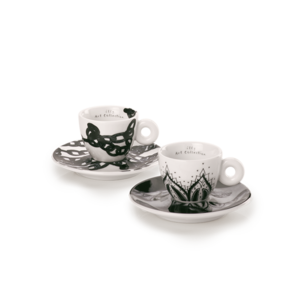 Shirin Neshat, vooral bekend om haar werk "Vrouwen van Allah", brengt haar kenmerkende stijl naar de espressokopjes met ontwerpen die de menselijke geest en sociale strijd verkennen. Monica Bonvicini vult dit aan met haar iconische zwart-witte kettingmotief, dat een gevoel van samenzijn oproept. Beide kopjes combineren kunst en functionaliteit op een unieke manier, wat elke espresso een speciaal moment maakt.