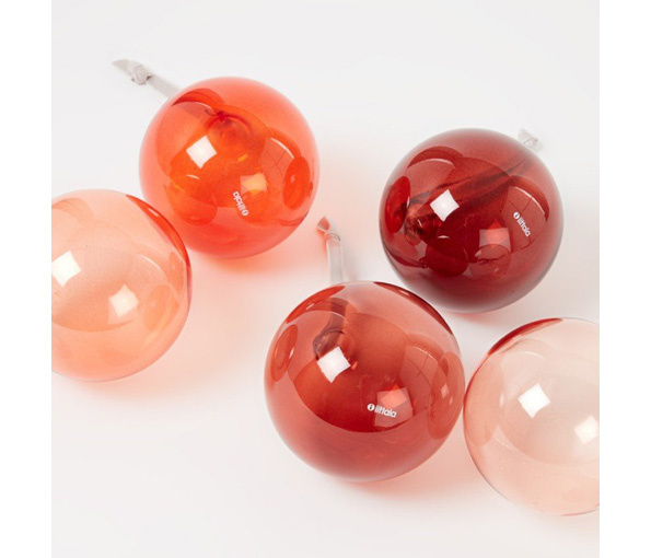 Creëer een feestelijke kerstsfeer met elegante mondgeblazen glazen bolornamenten van 80 mm. Elke bal wordt geleverd met een grijs textiel lint om gemakkelijk op te hangen en gloeit in boeiende rode tinten, variërend van lichtroze tot dieprood.