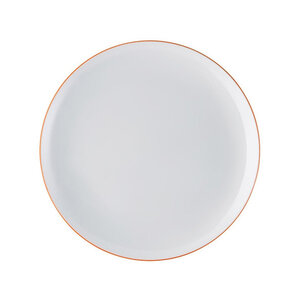 Plat bord coupevorm 26 cm Arzberg Cucina Colori met rondom gekleurde filet aan buitenrand. Prijs per stuk. Er werden 6 kleuren geproduceerd: rood, geel, oranje, groen, blauw en violet (lila). LAATSTE KANS