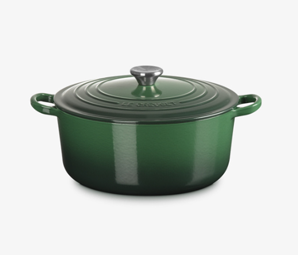 Stoofpot 26 cm Le Creuset groen cactus juniper met deksel gietijzer en knop in rvs. Geschikt voor alle fornuizen, ook inductie en oven. Diameter is binnenkant bovenaan. De inhoud is 5.3 liter. Ronde gietijzeren cocotte. TIJDELIJKE ACTIE BLACK FRIDAY 2025.