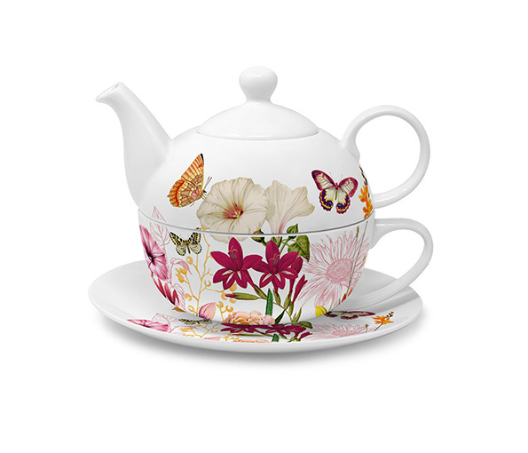 Tea for One Illusion - Theepotje in theekop op schoteltje voor 1 persoon, in giftbox (H:15,2cm Ø19cm). Paperproducts Design. Theepotje (H:10,5cm; B:16,5cm; 0,35l ), tas (H:5,7cm; Ø 12 cm; 0,3l ), ondertas (Ø17,8 cm). Alles in Bone China porselein.