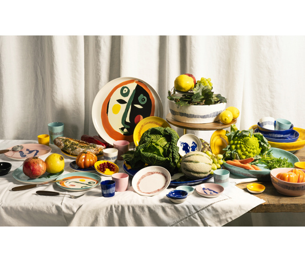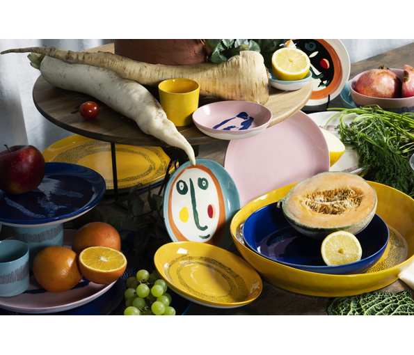 Met een brede waaier aan kleuren, groenteprints en positieve vibes weerspiegelt de nieuwe FEAST-collectie alles waar de ontwerper voor staat . De Brits-Israëlische kok Yotam Ottolenghi maakte deze expressieve collectie met een van de meest leuke momenten in gedachte : samenkomen met vrienden, kennissen en familie, een hapje eten, drinken en verhalen uitwisselen. Voor het project sloeg Ottolenghi de handen in elkaar met de Italiaanse kunstenaar Ivo Bisignano. “Ivo is een beste vriend en een soulmate om al mijn ideeën creatief vorm te geven”, vertelt Ottolenghi. “Ongeacht het medium waarmee hij werkt, is zijn kunst expressief, eenrlijk, vrolijk, opvallend en kleurrijk. Kenmerken die we ook voor onze gerechten kiezen.”