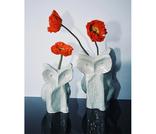 De Owl Vase, ontworpen door Marni voor Serax, maakt deel uit van de After Midnight-collectie. Met zijn sculpturale uilenvorm, speelse karakter en levendige kleuren is het een echte blikvanger. Verkrijgbaar in twee formaten en diverse tinten