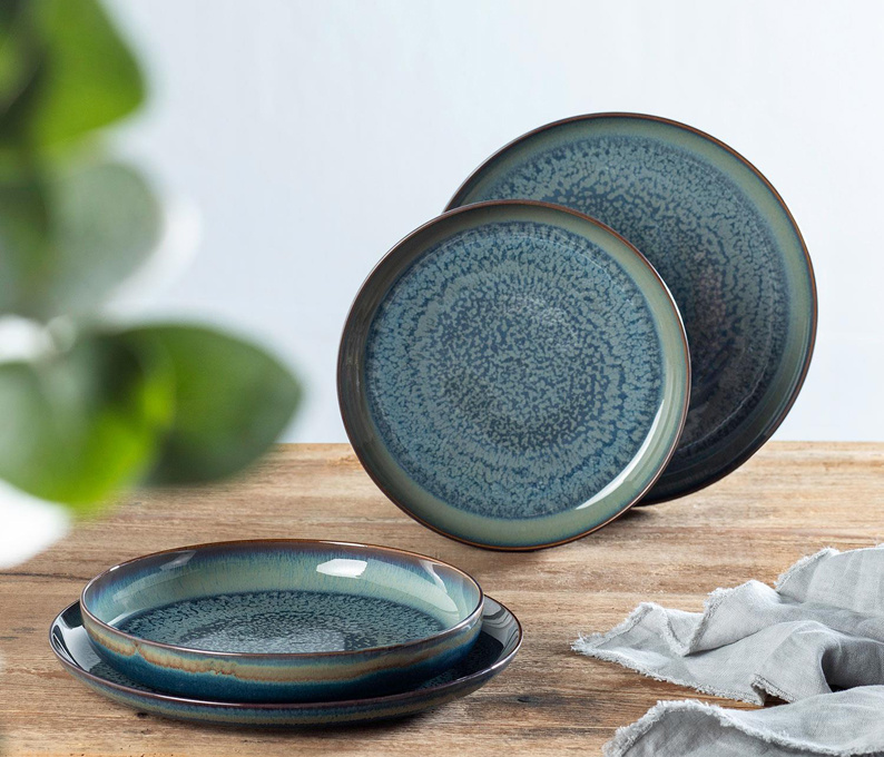 Hierdoor ontstaan decoratieve kleurpatronen en kleurstructuren elk stuk uniek maken. Wij volgen 2 decoren van Crafted in onze collectie : Blueberry en Breeze. -
