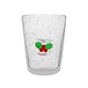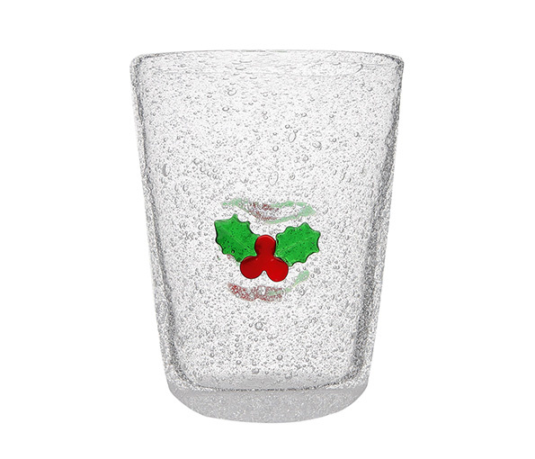 Beker Memento in wit glas met takje hulst - Kerstdecoratie - Christmas. Inhoud 30 cl. Uit een reeks van 8 verschillende witte glazen bekers met kerstvoorwerpen. Collectie ME XMAS. Niet in de microgolfoven.