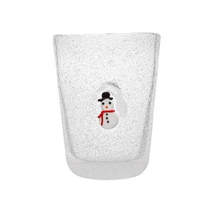 Beker Memento in wit glas met sneeuwman - Kerstdecoratie - Christmas. Inhoud 30 cl. Uit een reeks van 8 verschillende witte glazen bekers met kerstvoorwerpen. Collectie ME XMAS. Niet in de microgolfoven.