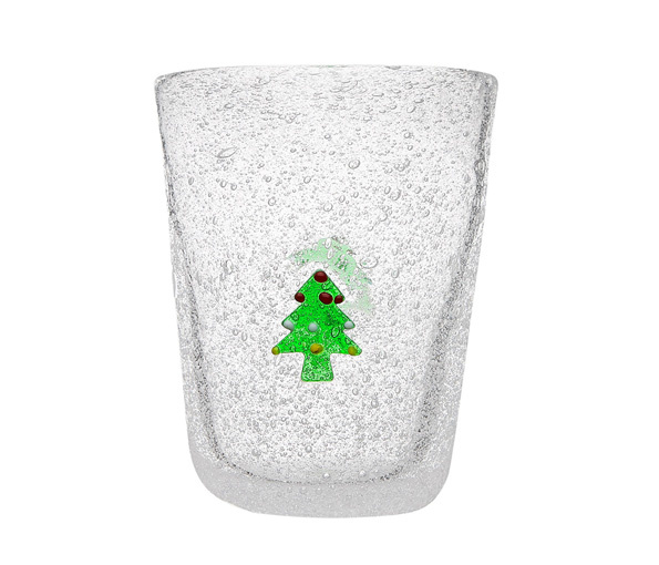 Beker Memento in wit glas met kerstboom - Kerstdecoratie - Christmas. Inhoud 30 cl. Uit een reeks van 8 verschillende witte glazen bekers met kerstvoorwerpen. Collectie ME XMAS. Niet in de microgolfoven.