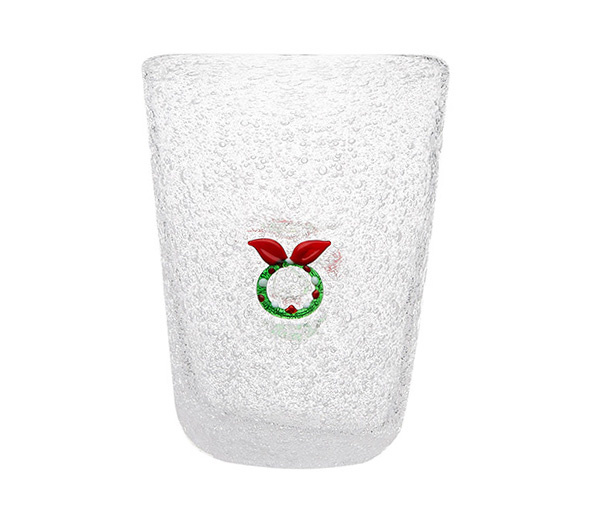 Beker Memento in wit glas met kerstkrans - Kerstdecoratie - Christmas. Inhoud 30 cl. Uit een reeks van 8 verschillende witte glazen bekers met kerstvoorwerpen. Collectie ME XMAS. Niet in de microgolfoven.
